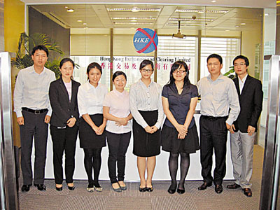 ■參觀香港交易及結算所有限公司上海辦事處(香港交流團學生,左三曾燕婷、左四陳芬芳、右四陳紫敏及右三陳玉如)