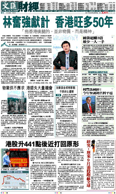 在香港市面被大量內地自助遊旅客進佔、樓價被推高、商舖幾乎全部變成奢侈品店的今天,林奮強看到的,卻是本港對服務業、醫療保健、教育及各類型物業需求空前強勁的時代,去年度政府財政盈餘高達750億元,財政盈餘佔GDP高達4.3%,GDP增長高達8%,每年到港旅客逐年攀升,去年海外到港成立公司數量達280間,創歷年紀錄,今年上半年亦達198間,料今年數字將再創新高,全球企業蜂擁進駐香港,林奮強認為,2010-14年,乃是關乎香港未來發展的黃金五年。