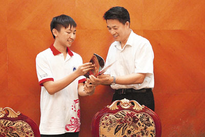 ■保良局董玉娣中學學生代表(左)向湖北省港澳辦副巡視員范碩英(右)致送紀念品。