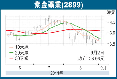 在7月份,紫金收購了澳洲金礦公司Norton Gold的1.38億股股份,作價為2,767萬澳元。在完成收購後,紫金將持有NortonGold的16.98%股權成為大股東。另外在8月份,公司又收購了位於吉爾吉斯的左岸金礦的60%股權,作價為6,600萬美元。這兩項交易仍有待有關當局審批,但一經落實,兩項黃金資產以股權計將為紫金帶來69.5噸的黃金資源量,約為紫金現有資源量的9%。雖然此兩收購對紫金即時的盈利貢獻不大,但已反映出紫金正逐步將業務向海外伸展的策略。