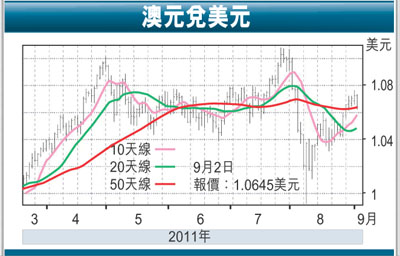 另一方面,在美國8月份非農就業人數出現零增長後,美國聯儲局需要推出第3輪量化寬鬆措施的機會已有所增加,該情況除了是不利美元於往後的表現之外,不排除較高息的商品貨幣亦將會逐漸受惠於美元的偏弱走勢,這亦有助澳元於稍後的表現。此外,受到日本央行的干預陰影之下,日圓近期的升幅已是明顯受到頗大限制,該情況亦是導致澳元兌日圓交叉匯價得以從近期的76水平大幅反彈至上周82水平的原因之一。故此受到澳元兌日圓交叉盤仍處偏強走勢的影響下,預料澳元將反覆走高至1.0800美元水平。