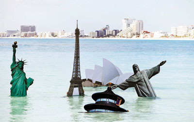 ■氣候暖化是全球共同應對的危機,若不及早正視,各國地標遲早會被淹沒。資料圖片