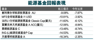 渤海漏油不僅拖累中海油股價,也拖累ConocoPhillips股價於上月一度來到每股60.4元(美元,下同)的今年新低,對相關持股基金走勢有一定程度的影響,加上一連串欠佳經濟數據,以及市場投資氣氛轉差,令能源股基金8月平均13.52%的跌幅,居期間行業基金排行榜榜末。由於能源股近期累積的跌幅頗大,但面對油田已漸見回穩,相關基金仍不妨考慮趁低收集。