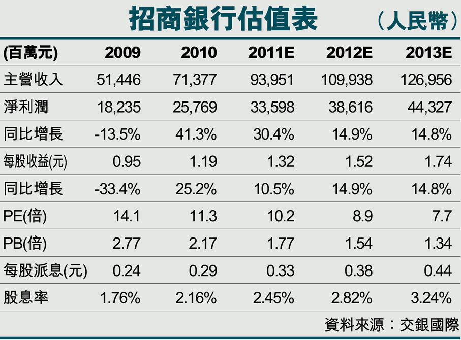 H股透視:招行息差回升高於同業 (2011-09-10) (圖)