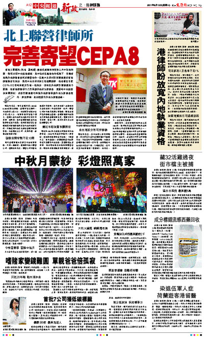 北上聯營律師所 完善寄望CEPA8 (圖)