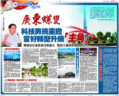 廣東蝶變 科技勇挑重擔 當好轉型升級「主角」 (2011-09-13) (圖)