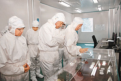 ■廣東省科技廳廳長李興華(中)參觀半導體照明研發中心