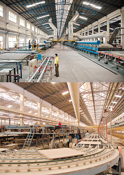 ■由佛山轉移到清新的陶瓷企業,設備升級後的現代化陶瓷生產線,廠區及車間見不到灰塵。