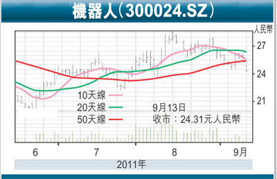 我們預計機器人2011、2012和2013年的EPS為0.53,0.77和1.07元,對應的PE為50.74,34.98,25.15倍。給予2012年40倍PE,對應的PEG為0.87,目標價為30.8元。