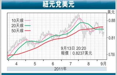 紐元本月初連番受制於85美仙水平後,其走勢已逐漸趨於偏弱,在先後跌穿84及83美仙水平後,更一度於本周初反覆下滑至81.20美仙附近的1個月以來低位。由於市場近期的關注重點已再次落在希臘可能出現債務違約的問題上,而且投資者亦頗為憂慮意大利的債務問題將會轉壞,再加上德國對歐洲金融穩定基金的支持還依然不明朗,因此歐元匯價的跌幅遂顯著有所擴大,該情況亦同時對商品貨幣的表現構成負面影響,故此預期紐元將會續有反覆下調空間。