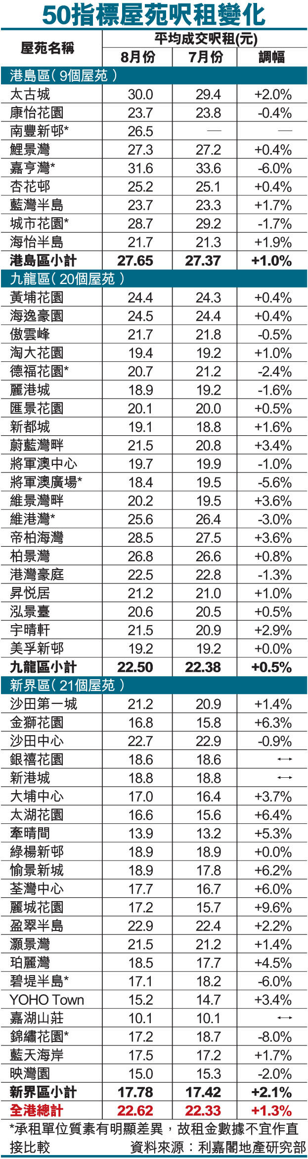 *承租單位質素有明顯差異,故租金數據不宜作直接比較 資料來源:利嘉閣地產研究部