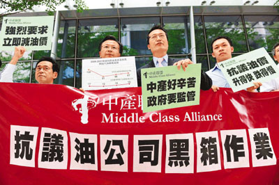 中產聯盟約10名成員昨到蜆殼公司遞交請願信,要求油公司公開價格調整機制,希望政府引入競爭,打破由兩大公司壟斷市場的局面,又呼籲消費者委員會調查油公司是否作不合理經營。