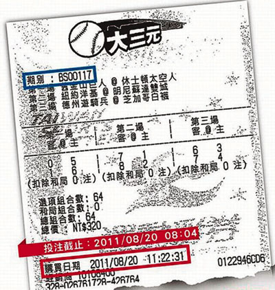 據爆料者提供林昊縉作弊的第117期頭彩彩券,上面的購買時間是8月20日11時22分,但當期3場美國職棒賽事,最早1場是8時05分開打,最晚1場是10時57分結束;按「大三元」規定,8時04分即應截止投注,而這張彩券是在截止投注、比賽已打完後才購買。