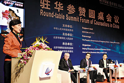 來自韓國的外交官員暢談了韓國自戰爭以後的發展簡況,尤其是在公共交通上的發展,他建議北京CBD亦應大力發展科學化的公共交通,使得人們最便捷的出行選擇是公共交通而不是私家車。本次駐華參贊圓桌會議是2011北京CBD商務節的重要組成部分。商務部、北京市投資促進局有關領導到會並致辭,多國駐華參贊、政府官員及眾多跨國公司、駐區重要企業的高層出席會議。朝陽區副區長張立新在大會做主旨發言,結合北京市「十二五」規劃和朝陽區「新四區」戰略,就「如何通過吸引跨國公司、世界500強等高端重要企業入駐,加快北京CBD建設」建言獻策。會後,與會嘉賓在朝陽規劃藝術館參觀了朝陽區「十二五」規劃展覽和「雙十工程」展覽,加深了對北京朝陽區、北京CBD發展前景的感性認識。