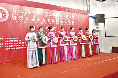 啟動儀式現場,一群身著清代服飾的「菜模」手持展品輕移蓮步而來,裊裊婷婷、風姿綽約,猶如一陣撲面而來的清風,夾雜著濃郁的中國古文化氣息;與此同時,「中國糖藝第一人」曹繼彤先生的關門弟子白金星師傅手捧晶瑩剔透的糖塑鳥巢出場,展現歷史與現代的完美融合。
