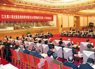 ■1999年1月28日,首都各界在北京人民大會堂舉行座談會,隆重紀念江澤民主席《為促進祖國統一大業的完成而繼續奮鬥》重要講話發表4周年和全國人大常委會《告台灣同胞書》發表20周年。