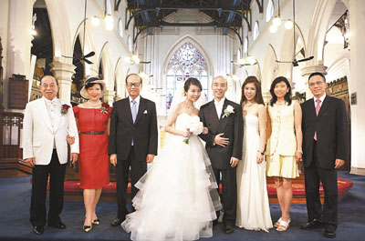 ■電能董事總經理曹棨森嫁女,難得長和系主席李嘉誠及副主席李澤鉅及妻子親到聖約翰座堂道賀,十分俾面主人家同一對新人。