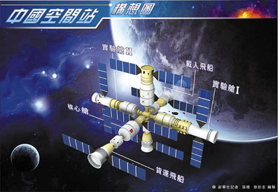 他指,「天宮一號」是太空實驗室的雛形,為後面的二號、三號作準備。在2016年以前中國還要發射「天宮二號」、「三號」,那就是太空實驗室。第三步,中國將在2020年建立自己的太空站,也將是多艙式的,一個核心艙對接兩個實驗艙。