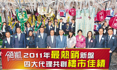■長實黃思聰(左六)、南豐麥一擎(左五)及長實封海倫(左七)表示,期望領凱於黃金周的內地客比例會進一步上升。