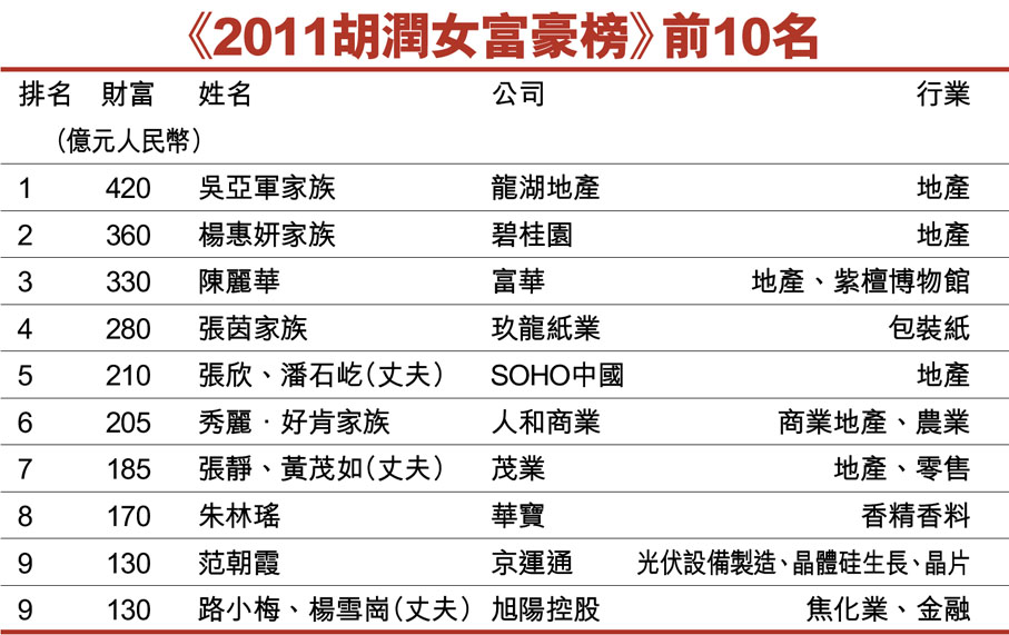 《2011胡潤全球白手起家女富豪榜》前5名 (圖)