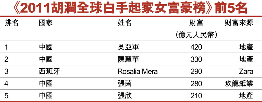 《2011胡潤全球白手起家女富豪榜》前5名 (圖)