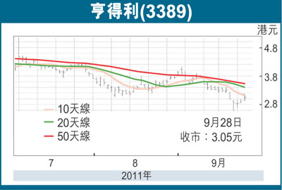 儘管公司2011年上半年業績強勁且我們目前尚未看到內地奢侈品需求放緩的跡象,但自我們7月29日將評級下調為賣出後,亨得利的股價已下跌了25%;基於現金流折現模型,我們得出的目標價為3.30港元,對應13倍2012財年市盈率。