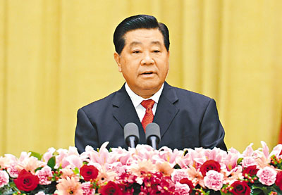 賈慶林強調,推動兩岸關係和平發展,實現祖國完全統一,是海內外中華兒女的共同心願。近年來,兩岸雙方在反對「台獨」、堅持「九二共識」的共同政治基礎上不斷增進政治互信,實現全面直接雙向「三通」,簽署並實施經濟合作框架協議,兩岸各界加強交流往來,兩岸關係取得一系列突破性進展。我們將牢牢把握兩岸關係和平發展主題,努力維護得來不易的良好局面,不斷鞏固改善發展兩岸關係的政治基礎,堅決反對和遏制任何「台獨」分裂行徑,推動兩岸關係沿著正確的方向不斷前進,努力使兩岸關係和平發展的成果惠及更多的兩岸同胞尤其是台灣基層民眾。