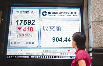 香港文匯報訊(記者 卓建安)港股昨日未能承接隔夜歐美股市升勢,收市下跌418點至17,592點,跌幅2.32%。總結9月,港股下跌14.33%,為08年10月以來最大單月跌幅。以第三季計算,港股更下挫4,806點或21.46%,表現在亞太區包尾;市值約蒸發5.2萬億元,是2001年第三季以來最大季度跌幅。以港交所統計的206萬股民計,相當於人均帳面損失252萬元。