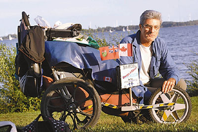 加拿大蒙特利爾男子貝利沃(見圖)因生意失敗,毅然決定浪跡天涯,結果以4,000加元(約3萬港元)作路費,一「走」11年,步行7.5萬公里,橫跨64國,創史上最長不間斷步行旅程,預計下月16日重返家鄉。