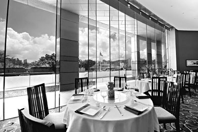 ■會展中心4家餐廳推出318至628元的國慶煙花晚餐,已經預訂一空。圖為位處海邊的金紫荊粵菜廳。