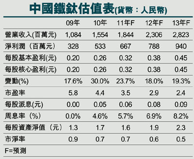¡@¥Ñ©ó°ê¤ºÜgºëÄq¥«³õ±N«ùÄò³B©óµu¯Êª¬ºA¡AÜgºëÄq»ù®æ¤Wº¦±NÀò¤ä¼µ¡F¦P®É¤½¥qÅKÄq¥Û·~°È³B©ó¬Û¹ï«Ê³¬ªº°Ï°ì¥«³õ¤¤¡A»ù®æÃ©w©Ê¥ç¸û°ª¡C¤½¥q¥¼¨Ó¨â¦~·~ÁZ±N³B©óéw¼Wªø¤¤¡C§Ú̱N¤½¥q2011/2012¦~ªºEPS¹w´ú¥Ñ¦¹«eªº0.33/0.42¤¸·L½Õ¦Ü0.32/0.38¤¸¡C¤½¥q²{ªÑ»ù¹ïÀ³2011/2012¦~ªºP/E¶È¬°3.5¿/2.9¿¡C¤½¥q¦ôÈÅãµÛ°¾§C¡A§Ú̺û«ù¤½¥q¡u¶R¤J¡vªº§ë¸êµû¯Å¡C¥X©ó¼f·Vì«h¡A§Ú̱N¤½¥qªº¥Ø¼Ð»ù¥Ñ4.7´ä¤¸¤U½Õ¦Ü2.8´ä¤¸¡A¹ïÀ³2012¦~ªºP/E¬°6.0¿¡C