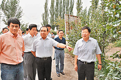 ■新疆質量技術監督局黨組書記 買買提.吐爾迪(中)在基層檢查工作
