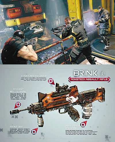 ■在玩Brink的時候,最令筆者覺得特別的是可以自行設計自己特有的手槍,你可以加兩個彈閘,又可以放榴彈在槍上,各式各樣。