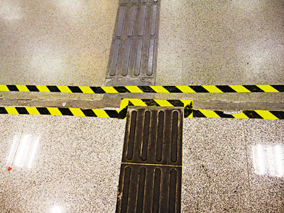 ■半途中斷的引路徑常令視障人士失去方向。香港復康聯盟供圖