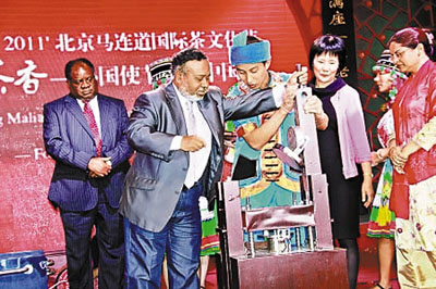9月22日下午,「古韻茶香——外國使節樂享中國茶」活動在北京老舍茶館隆重舉行,25個國家30多位駐華使節和夫人、外交官,以及在京國際友人等蒞臨老舍茶館,感受中國茶文化,了解中國茶。德國國際合作機構(GIZ) 主席艾德樂Andreas Edele 在本屆茶文化節開幕式上說:中國是茶葉的故鄉,歐洲各國對中國茶葉的認識與需求一直都在增長,特別是對中國的綠茶和特種精品茶的興趣不斷增加。