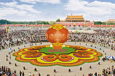 花團錦簇迎國慶 天安門廣場現立體花壇 (2011-10-03) (圖)