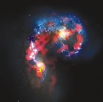 ■這是阿塔卡瑪大型毫米/次毫米波射電望遠鏡陣列運轉後首次捕捉的7,000萬光年之外烏鴉座星系碰撞的照片。 新華社