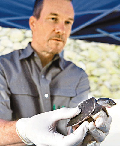 ■艾加里表示,豬鼻鱉前足有掌蹼,有如海龜一樣,其鼻子如「豬鼻」,長相可愛。