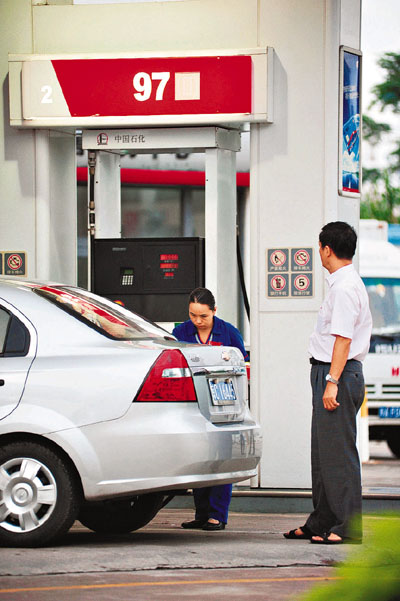 ■國家發改委決定,自今日零時起,汽、柴油每噸均減價300元。圖為海南瓊海市一名司機在油站為車輛加油。 新華社