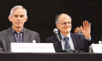 ■西姆斯(左)和薩金特(右)在普林斯頓大學出席記招。路透社