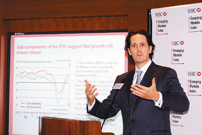 匯豐昨日還公布最新的新興市場指數(EMI)披露,2011年第三季新興市場從第二季的54.2降至51.9,是本項調查歷來第四低數值。巴西、中國內地、新加坡、南非、韓國和台灣的製造業均出現生產下降,當中以南非和台灣廠商的產出降幅尤其明顯,其次是巴西;而內地和新加坡的降幅則分別是輕微及溫和。
