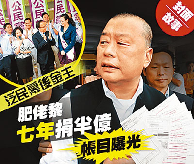 香港文匯報訊(記者 鄭治祖)城中熱議壹傳媒集團主席黎智英豪捐巨款給反對派政黨中人。據最新一期《東周刊》題為「泛民幕後金主,肥佬黎7年捐半億」的封面報道,指出Foxy分享軟件披露了大批相信是黎智英的財務文件,報道並引述公民黨前核心成員指,該黨公開籌款額只是一份公開賬項,黨內另有不少「檯底」絕密捐款,從不紀錄入政黨的營運收支中,即使公民黨的執委會內亦諱莫如深,黨內只有不出5名核心真正掌握實在的財務賬項。
