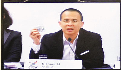 ■標普維持對HKT的信用評級負面展望。圖為電盈主席李澤楷上周在股東大會闡述分拆方案。資料圖片