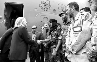 希拉里此行被認為是來尋求與利比亞新政府改善關係,在此次閃電訪問中,希拉里會見了利比亞「全國過渡委員會」主席賈利勒、臨時總理賈布里勒以及石油和財政部長阿里塔爾胡尼。