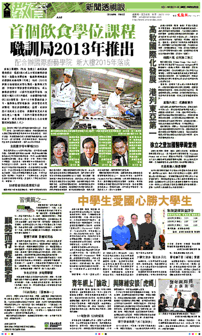 香港文匯報訊(記者 勞雅文)最新施政報告提出,撥款5億元成立全新的國際廚藝學院。為配合有關發展,職業訓練局銳意把整體飲食業培訓「升呢」,包括:2013年開辦全港首個飲食學位課程。職訓局又計劃,於現有中華廚藝學院附近選址,成立國際廚藝學院,以提升設施使用效率,預料新大樓2015年9月落成,全面運作後可提供2,000個學額,其中1/5予剛畢業的青少年。職訓局主席梁君彥指,廚藝學院未來的課程,會把廚藝與餐飲、品酒、食材供應以至飲食文化結合,推動香港美食天堂地位更上一層樓,「我們不單要培訓出烹飪高手,更是培訓對各國美食文化及食物配搭有認識的人才」。