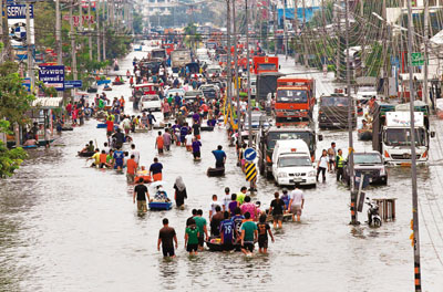 泰國洪災威脅未除,為保首都曼谷中心金融區安全,政府終決定犧牲曼谷東部加快泄洪。總理英祿昨日形容現況是「國家危機」,指洪水來自四方八面,曼谷無法獨善其身,並將要求曼谷市政府打開城內所有水閘。水災至今影響近900萬人,全國77個府有27個受災,造成320人死亡,大部分是浸死。