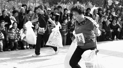 ■浙江瑞安農村婦女賽割稻比挑擔。 新華社