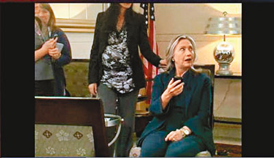 即使在「基地」領袖拉登被殺的今年,卡扎菲死訊也足叫見慣大場面的女強人美國國務卿希拉里震驚。哥倫比亞廣播公司播出片段顯示,正在阿富汗喀布爾準備接受訪問的她,透過助手的黑莓手機獲悉卡扎菲死訊時,不禁驚呼:「嘩!」(見圖)
