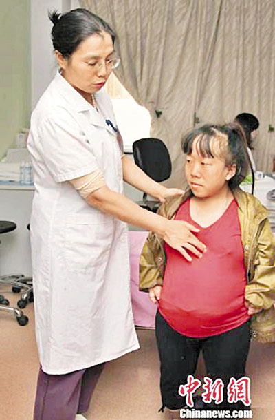 當天幫胡香娥做B超的超聲科主任田艾軍告訴記者,寶寶看上去整個比較小,26周胎齡只有24周那麼大,而且寶寶的胸腹之間有凹陷。她擔心寶寶胸骨發育不好,以後會影響心、肺等功能。至於會不會像媽媽一樣長不高,現在還不能確定。
