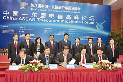 ■22日,中國聯通與老撾、越南的移動公司簽約。新華社